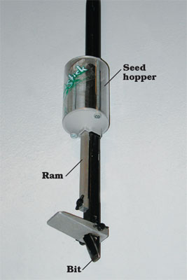 tip) of 2.74 pounds. OSU design (January 1, 2013) weighs 1.94 kg or 4.27 pounds. Seed weight (depending on the shaft volume) is 1.5 kg. TOTAL planter weight is over 6.4 pounds. Jan 1, 2013 design Total = 1944 g + 1000g seed = 2.944 kg = 6.48 lbs |